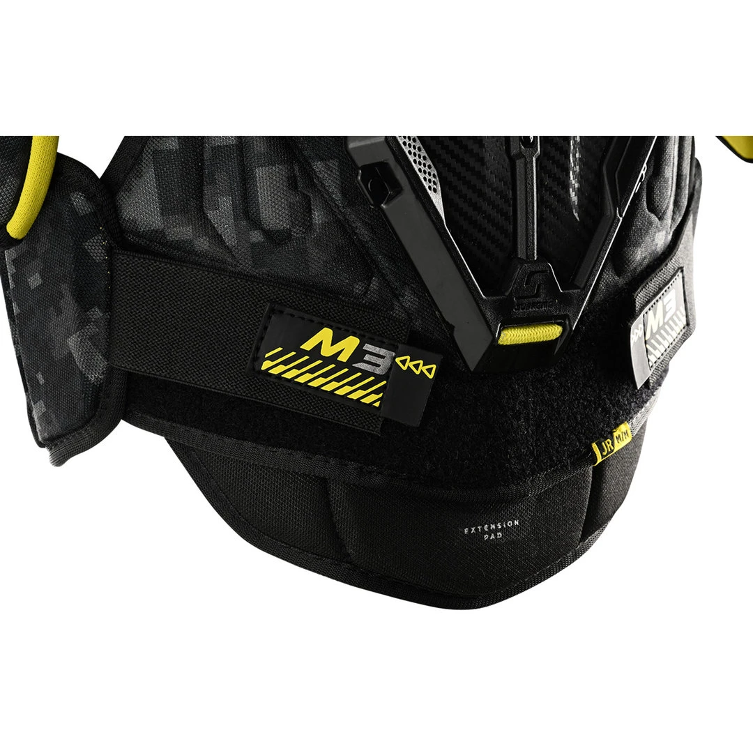 Beim Bauer Supreme M3 Schulterschutz sorgt das Upgrade des beweglichen Brustbereichs für eine noch bessere Passform und mehr Bewegungsfreiheit. Die Schulterkappen mit Low Profile AMP verrutschen nicht und bieten optimalen Schutz. Das bewegliche Brustbein sorgt für mehr Flexibilität. Der Bereich der Wirbelsäule ist mit einer PE Einlage ausgestattet, um den Rücken bestmöglich zu schützen. Der Oberarmschutz ist verstellbar und mit geformtem PE ausgestattet, um auch die Arme perfekt zu schützen.